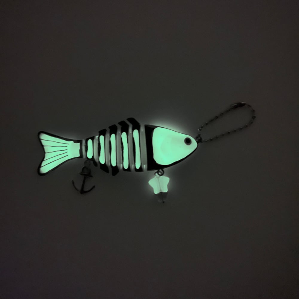 green glow in the dark skeleton fish keychain